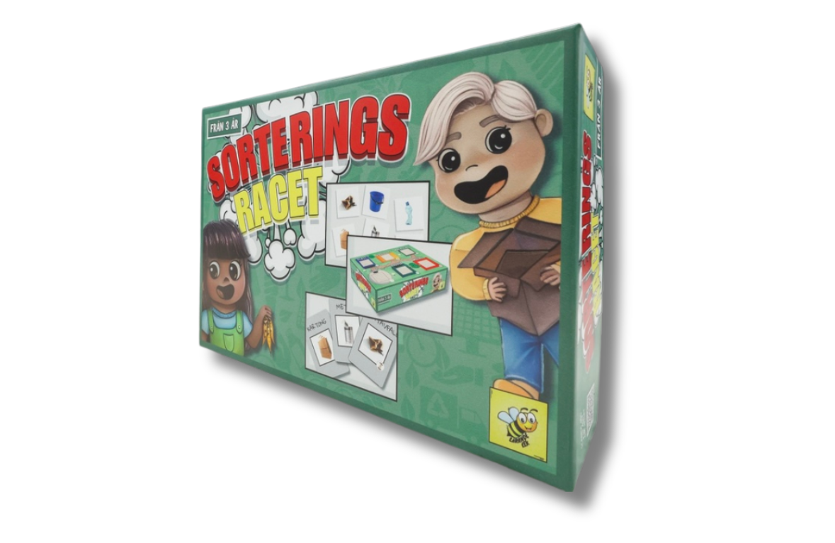 SorteringsRacet är ett fartfyllt sällskapsspel för barn i förskoleåldern som gör sopsortering både roligt och lärorikt. Spelarna turas om att vända kort och tävlar om att hitta rätt skräpbricka. När korten är slut sorteras skräpet i sopsorteringskärlen och den som samlat flest och sorterat rätt blir spelets vinnare och miljöhjälte!